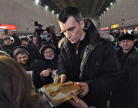 Проводы кандидата на пост президента России Михаила Прохорова в Санкт-Петербург, на Ленинградском вокзале.
