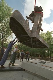 Установка памятника экипажу атомной подводной лодки "Курск" скульптора Льва Кербеля возле…