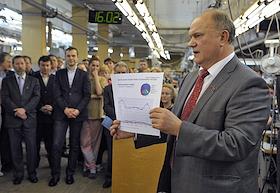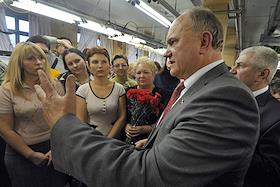 Экономика и бизнес Встреча председателя ЦК КПРФ, руководителя фракции КПРФ в Госдуме, кандидата в президенты России Геннадия Зюганова с коллективом швейного объединения "Большевичка".