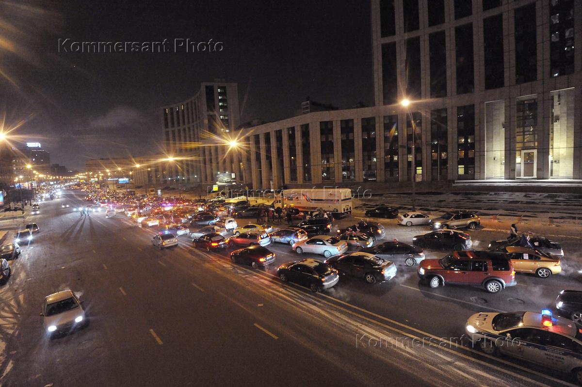 Автопробег в поддержку кандидата в президенты Владимира Путина по Садовому кольцу.