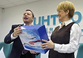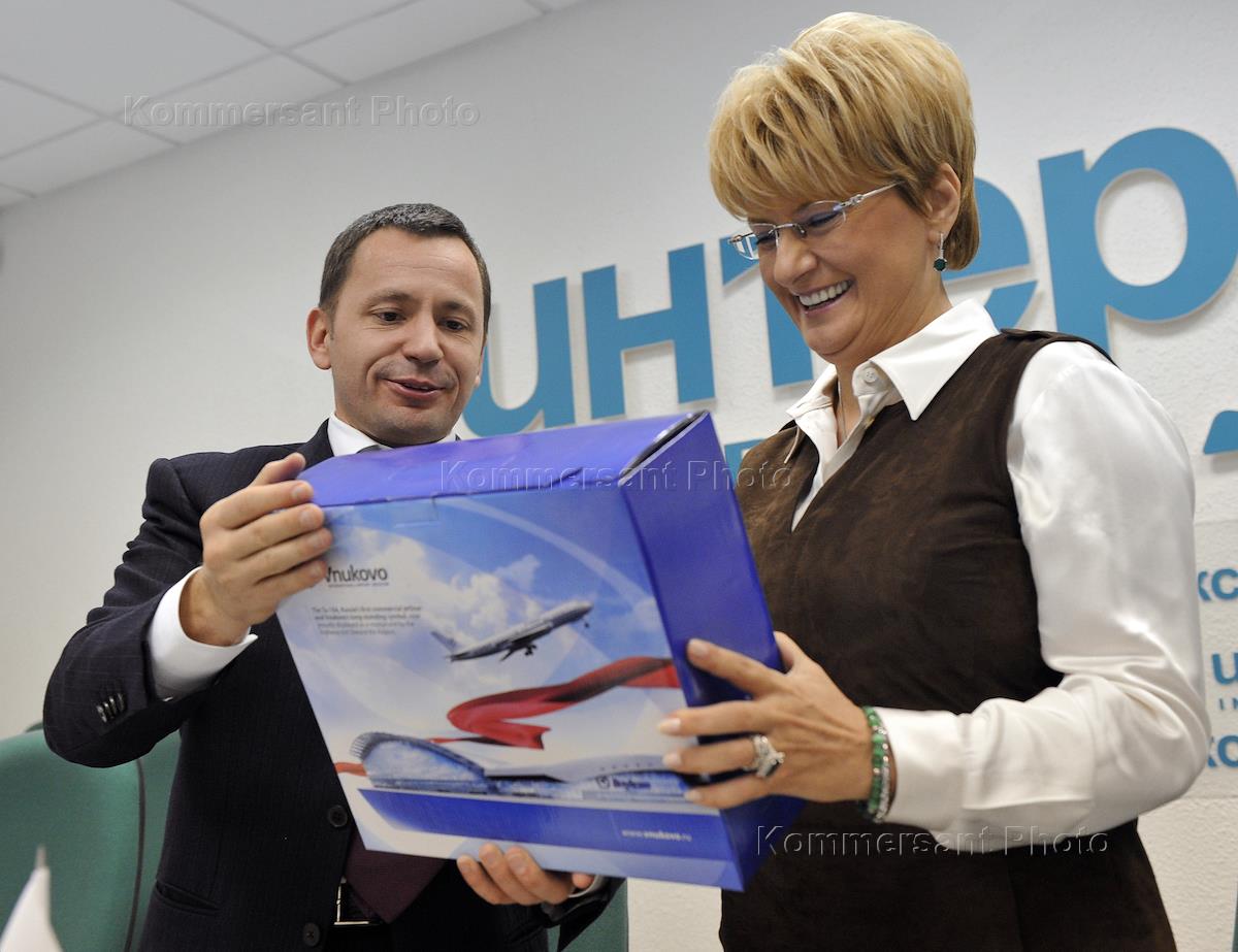 Экономика и бизнес П\к на тему: "Начало сотрудничества аэропорта "Внуково" и авиакомпании "Трансаэро". Новые возможности для пассажиров в 2012 году.", с участием Ольги Плешаковой, генерального директора ОАО "Авиационная компани "Трансаэро"; Виталия Ванцева, председателя совета директоров ОАО "Международный аэропорт "Внуково", в центральном офисе "Интерфакс".