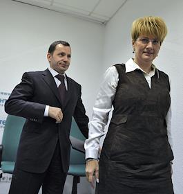 Директор ОАО "Авиационная компани "Трансаэро" Ольга Плешакова (слева) и председатель совета…