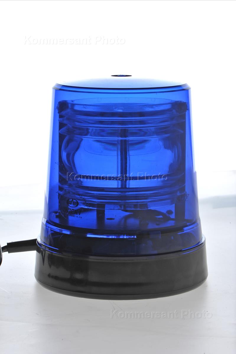 Обложка для журнала "Деньги". Спецсигнал (синяя мигалка) на крыше автомобиля.