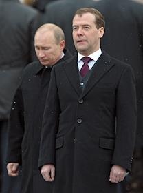День защитника Отечества. Слева направо: председатель правительства России Владимир Путин, президент…