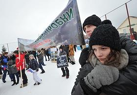 Участники митинга против вырубки леса и застройки на Рублевском шоссе.