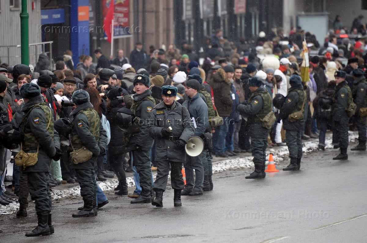 Сотрудники полиции во время акции оппозиции "Живое кольцо" на Садовом кольце.
