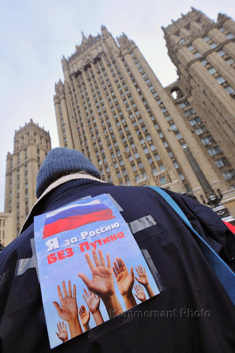 Сторонник оппозиции с плакатом на спине "Я за Россию без Путина!" во время акции "Живое кольцо" на…