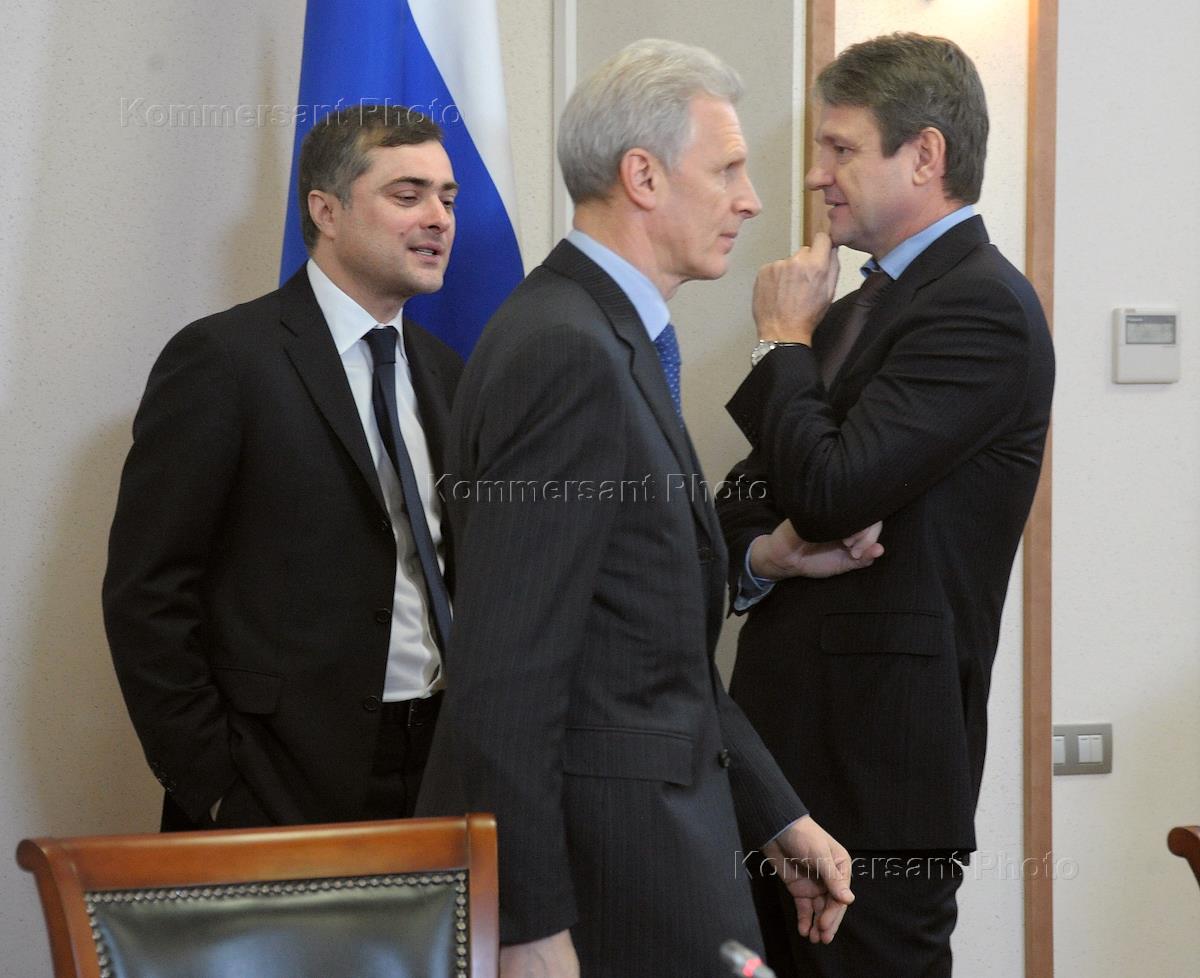 Слева направо: заместитель председателя правительства России Владислав Сурков, губернатор…