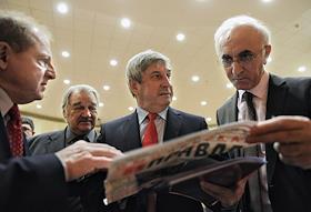 Выборы президента России. Слева направо: председатель партии "Справедливая Россия" Николай Левичев,…