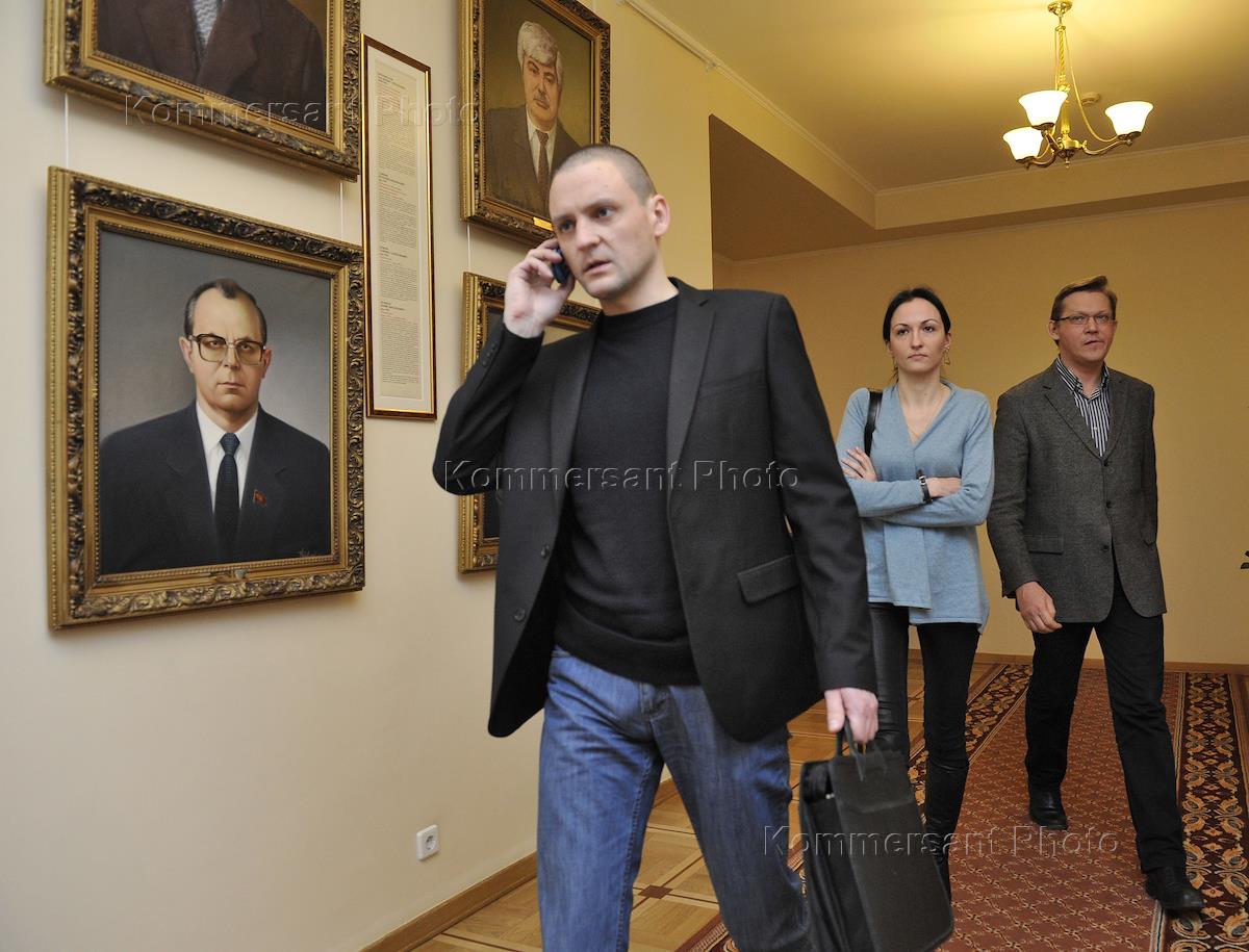 Слева направо: лидер движения "Левый фронт" Сергей Удальцов, пресс-секретарь движения "Левый фронт"…