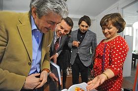 Слева направо: журналист Леонид Парфенов, корреспондент рубрики "Блюдо" "КоммерсантЪ Weekend" Елена…