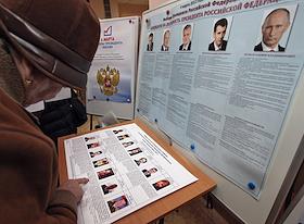 Выборы президента России. Подсчет бюллетеней на одном из избирательных участков города.