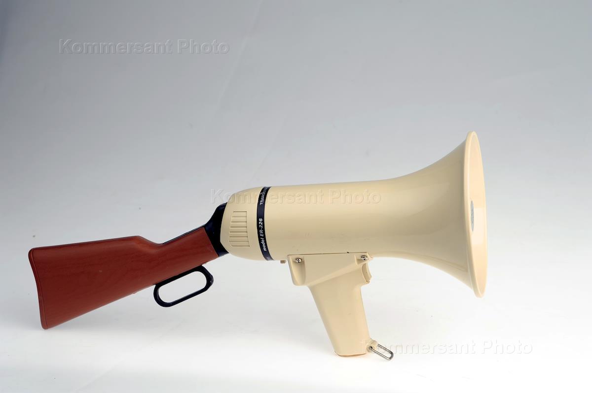 Обложка для журнала "Деньги". Приклад винтовки и мегафон (рупор).