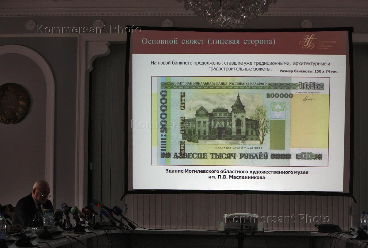 Презентация новой купюры достоинством 200 000 белорусских рублей в главном офисе Национального Банка…