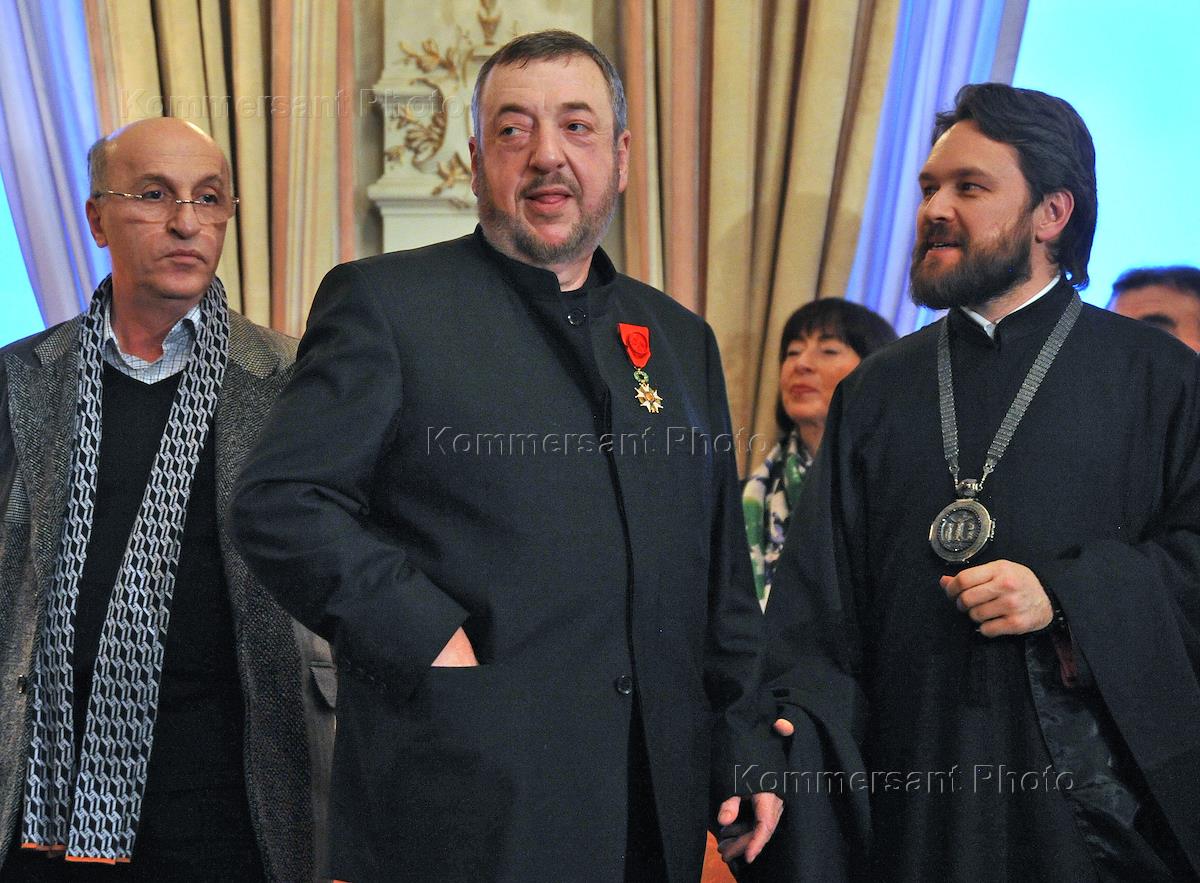 Президент медиагруппы "Живи!" Николай Усков (справа) на церемонии вручения знаков офицера Ордена…