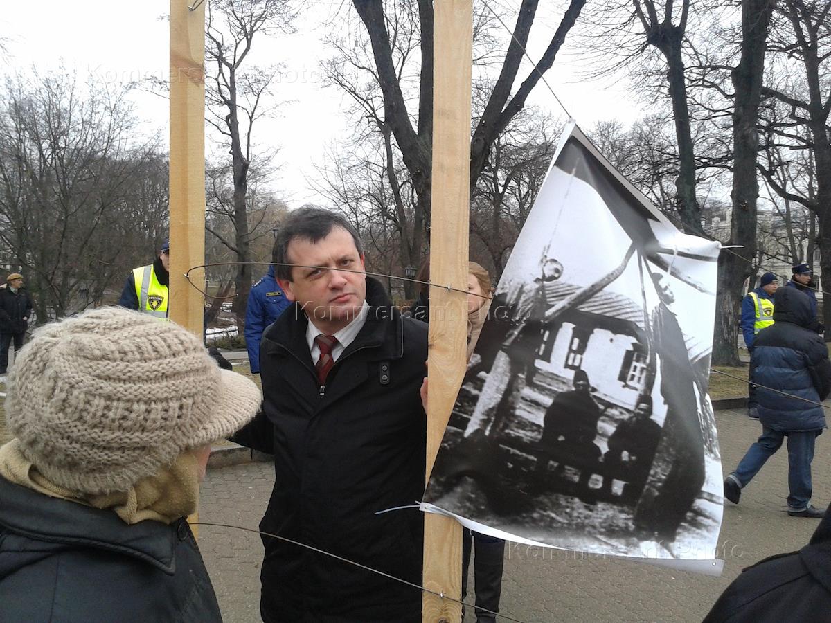 Шествие бывших легионеров "Ваффен СС" и их сторонников. Девяностолетний эсэсовец во время шествия.