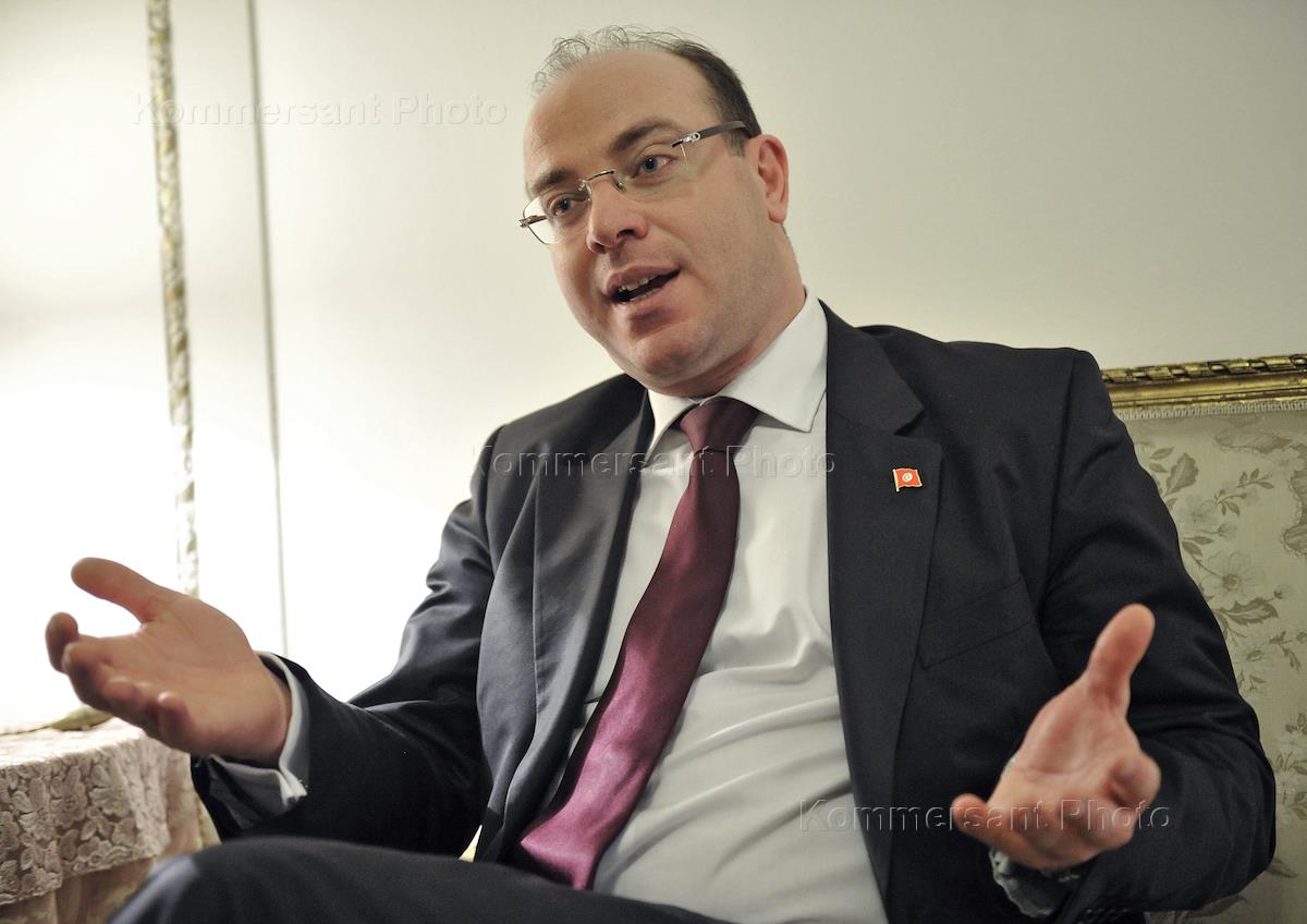 Министр туризма Туниса Ильяс Фахфах (Elyes Fakhfakh) во время интервью в посольстве Туниса в Москве.