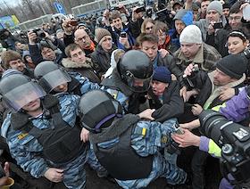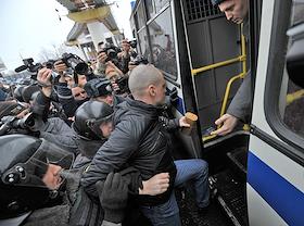 Лидер движения "Левый фронт" Сергей Удальцов (в центре) во время митинга сторонников акций "За…