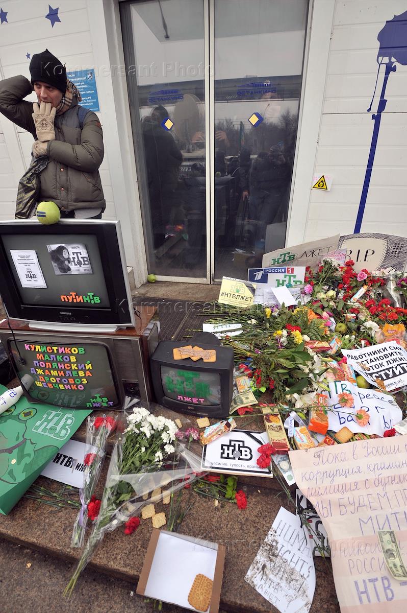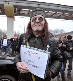 Экономика и бизнес Одиночные пикеты, организованные оппозицией против фильма "Анатомия протеста", вышедшего на канале НТВ в ночь на 16 марта, у ТЦ "Останкино".
