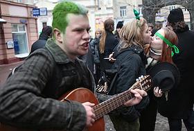 Парад в честь Дня Святого Патрика на Старом Арбате.