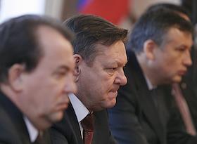 Губернатор Ленинградской области Валерий Сердюков (в центре) на церемонии подписания соглашения о…