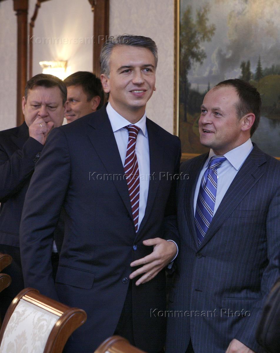 Губернатор Ленинградской области Валерий Сердюков (слева) и председатель правления ОАО "Газпром…