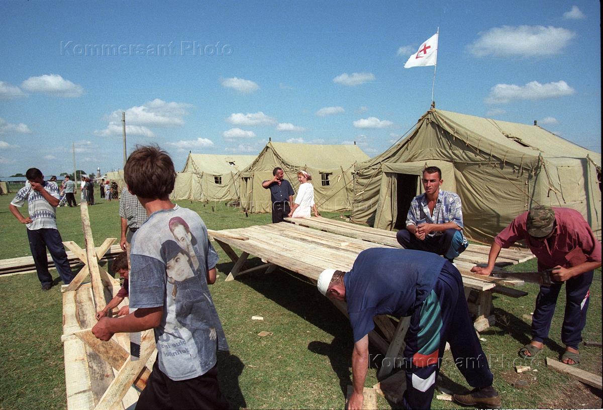 Палаточный госпиталь международной организации "Красный крест и красный полумесяц" в легере беженцев.