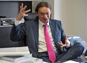 Вице-президент холдинга "ПрофМедиа" Сергей Тихонов во время интервью в своем офисе.