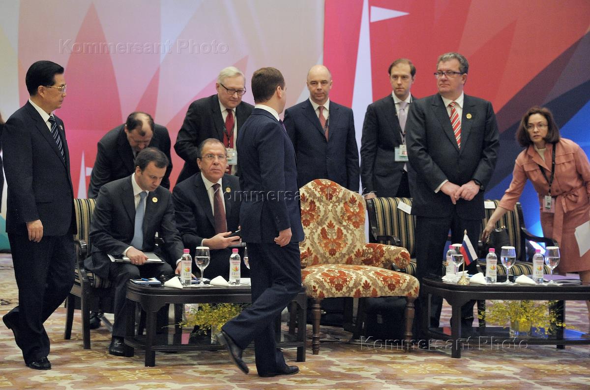 Саммит БРИКС. Слева направо: председатель КНР Ху Цзиньтао, помощник президента России Аркадий…