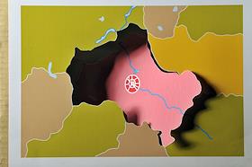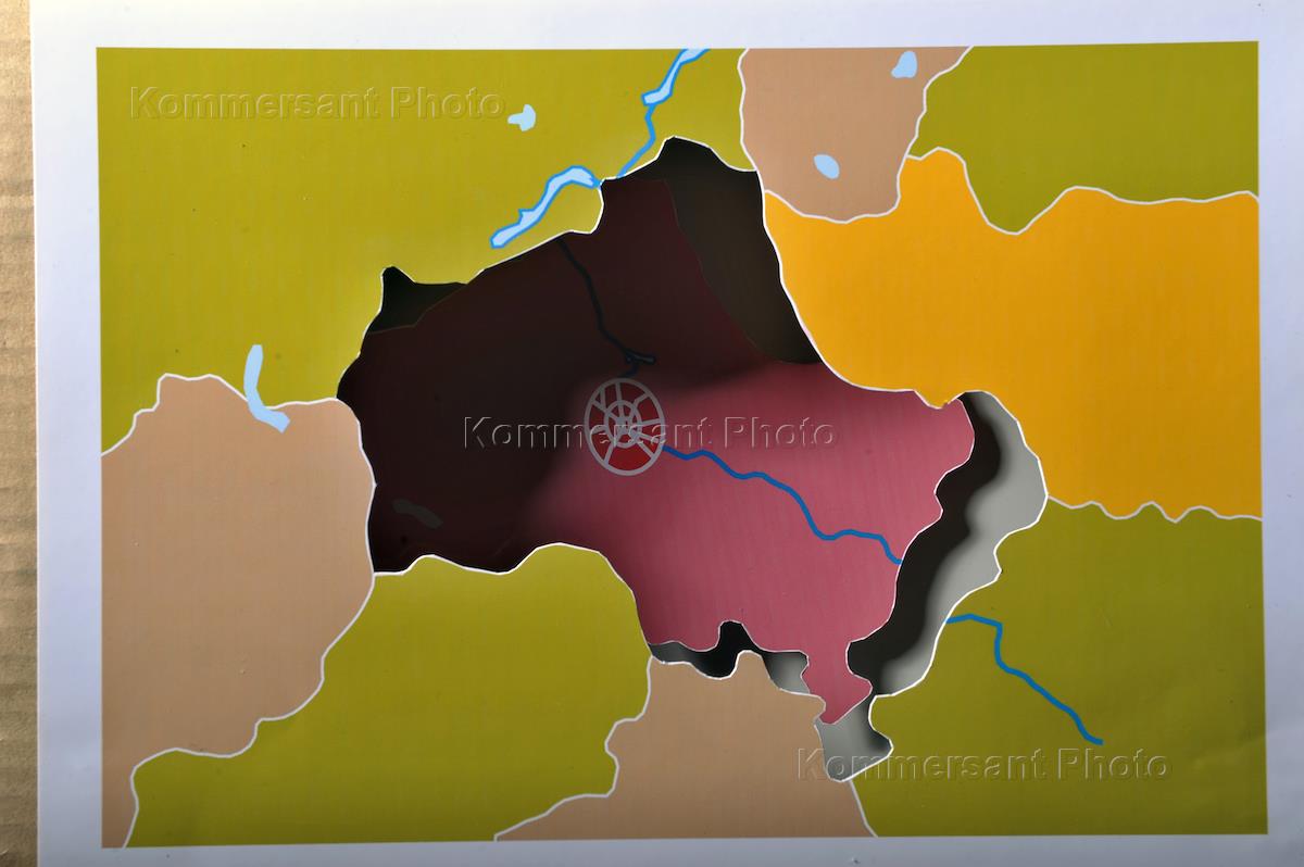 Обложка журнала "Деньги". Контур границ Москвы на карте России.