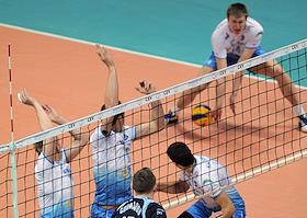 Чемпионат России по волейболу. Игроки команды "Искра" слева направо: Алексей Спиридонов, Александр…
