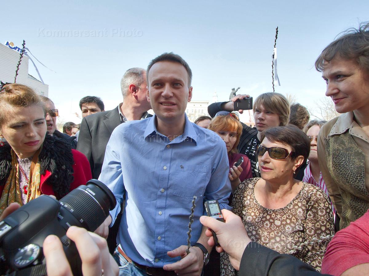 Блогер Алексей Навальный (в центре) во время акции протеста против итогов выборов в Астрахани.