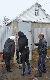 Супруга предпринимателя Гегама Саркисяна (вторая слева) и психологи у дома, где произошло нападение.