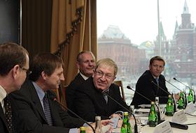 Бизнесмен Саит-Салам Гуцериев (второй справа) во время интервью в гостинице "Националь".