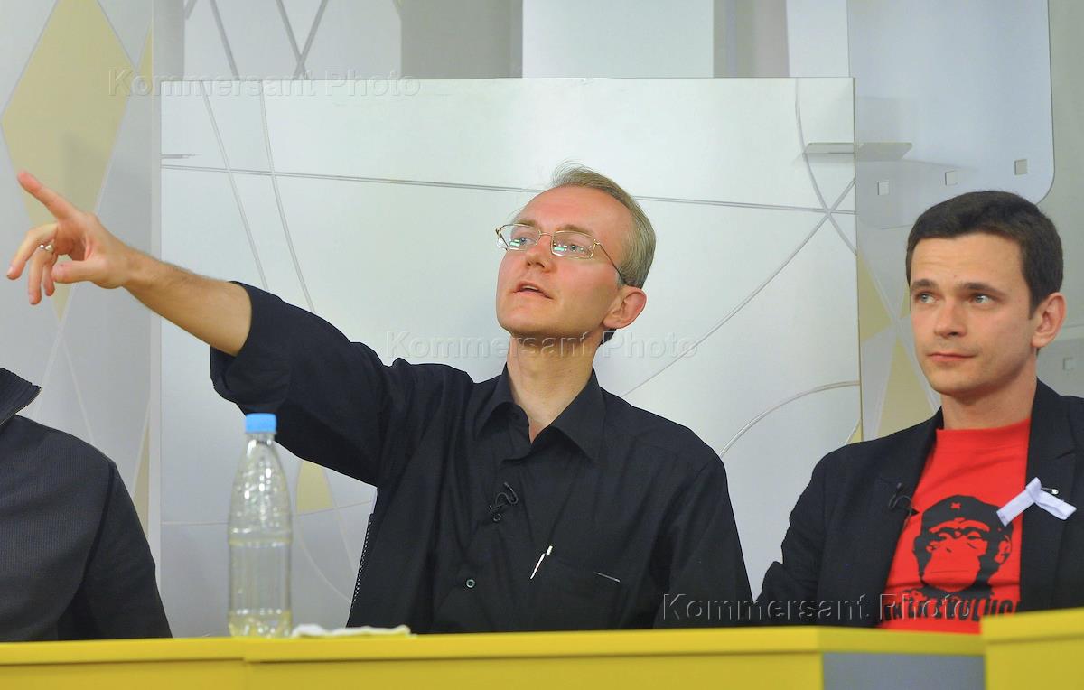 Бывший кандидат в мэры Астрахани Олег Шеин (слева) и один из лидеров движения "Солидарность" Илья…