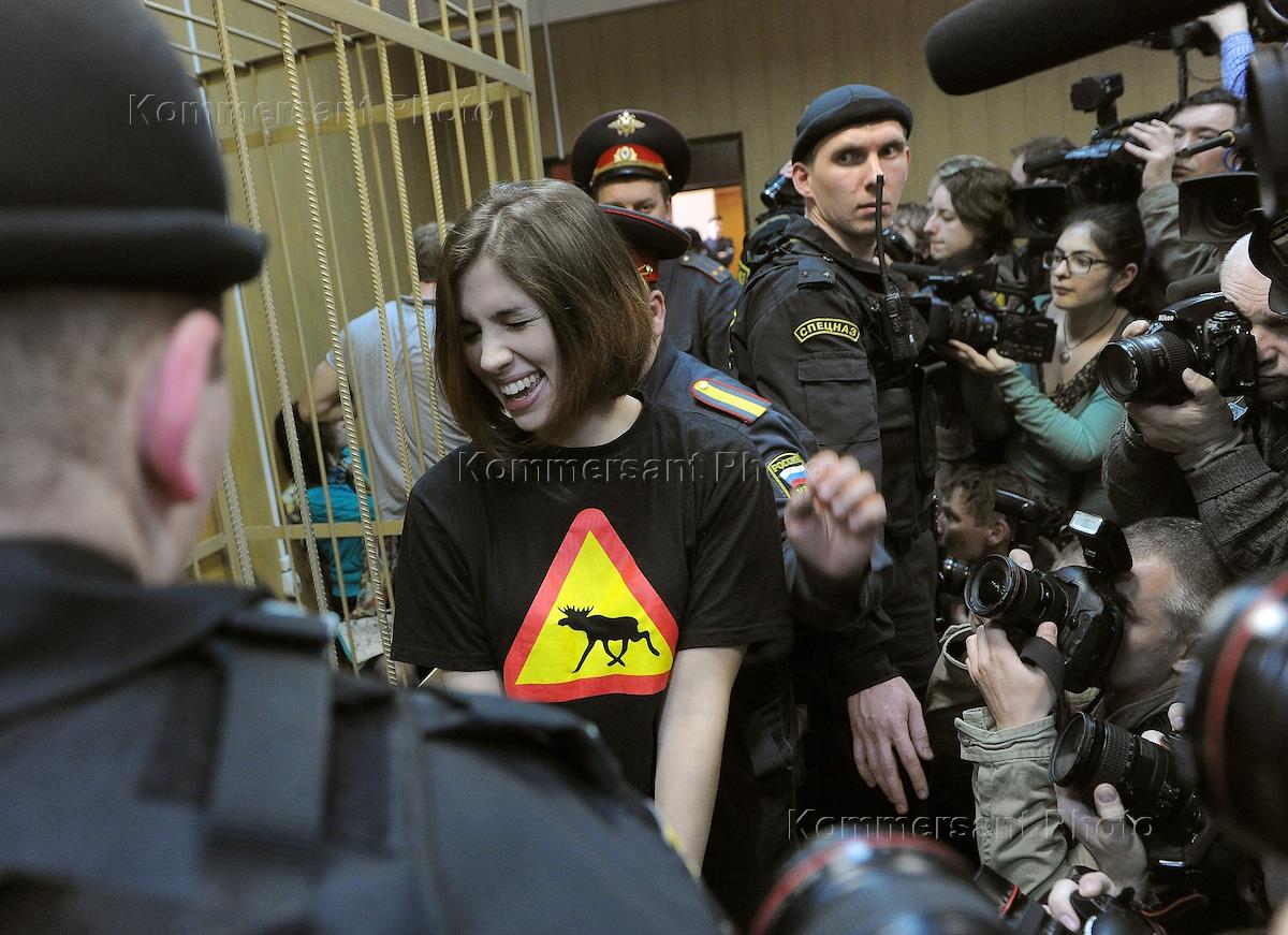 Правосудие Рассмотрение вопроса о продлении ареста предполагаемых участниц панк-группы "Pussy Riot" Марии Алехиной, Надежды Толоконниковой и Екатерины Самуцевич в Таганском районном суде.