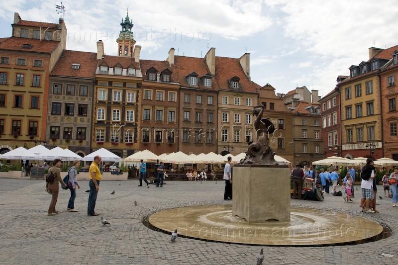 Виды Варшава. Старая часть города. Площадь Rynek Starego Miasta. Фонтан Syrenka.