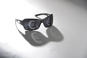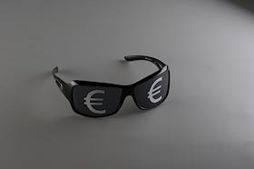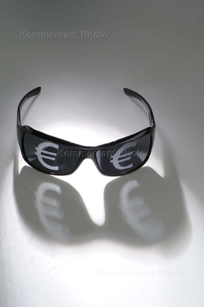 Обложка для журнала "Деньги". Темные очки со знаком евро.