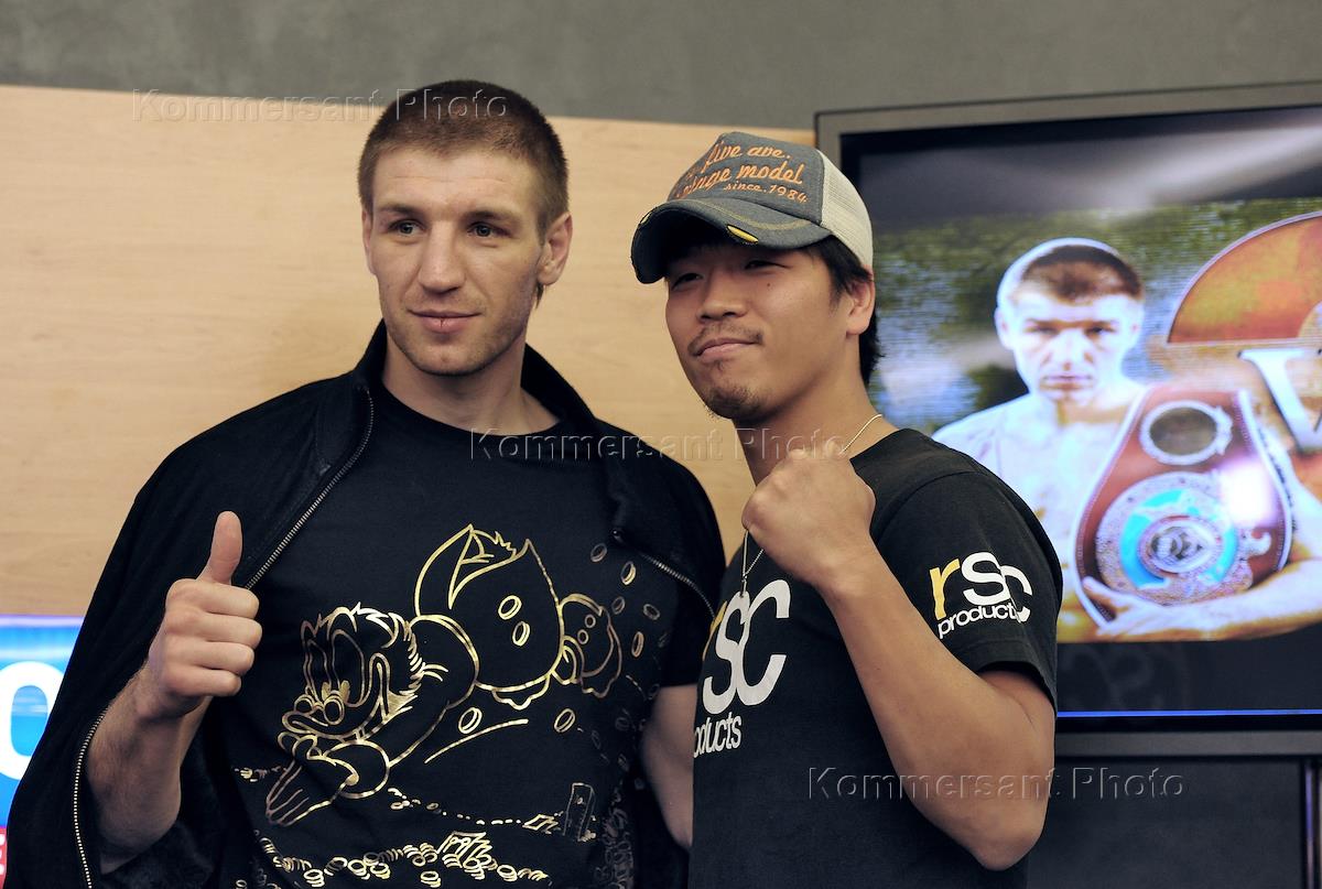 П/к обладателя титула чемпиона мира WBO Дмитрия Пирога (Россия) и претендента на чемпионский пояс Нобухиро Исида (Япония) в пресс-центре ВГТРК.