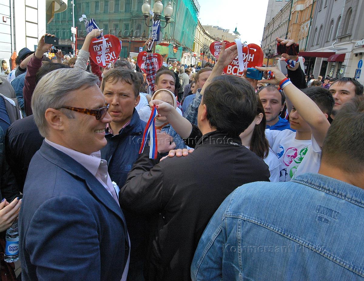 Cопредседатель оппозиционной Партии народной свободы (ПАРНАС) Михаил Касьянов (слева) во время акции…