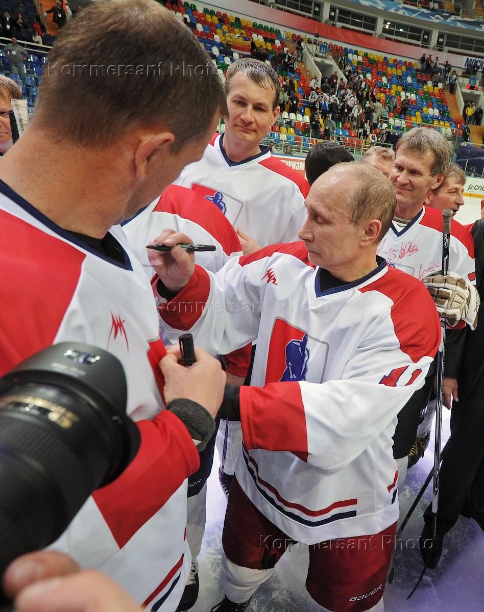 Финал любительской хоккейной лиги. Президент России Владимир Путин (слева) и представитель в Совете…