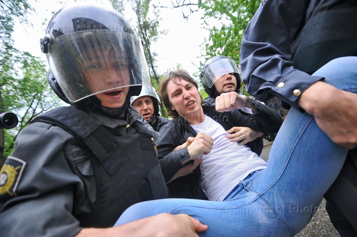 Задержание участников акции оппозиции сотрудниками полиции на Чистопрудном бульваре.