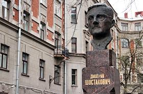 Бюст композитора Дмитрия Шостаковича во дворе дома, в котором композитор жил с 1936 по 1941 год.