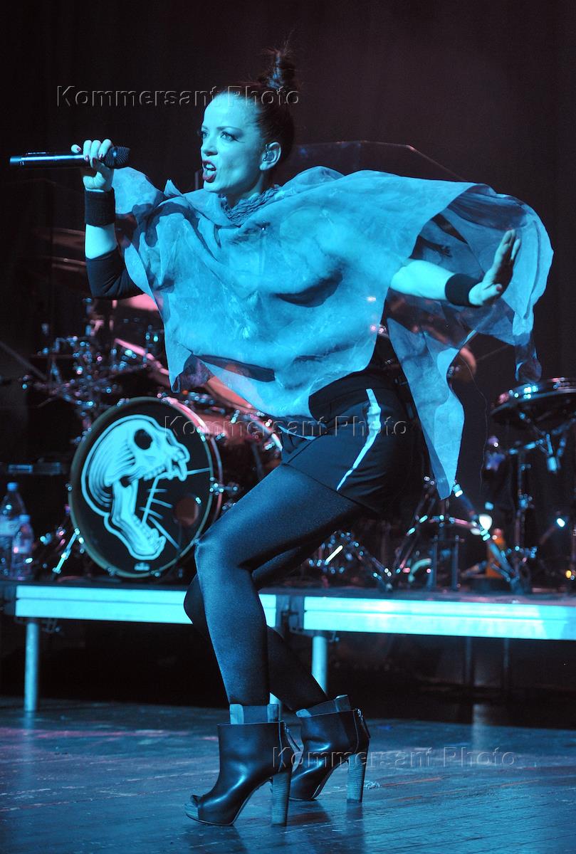Вокалистка рок-группы Garbage Ширли Энн Мэнсон во время выступления группы с презентацией нового…