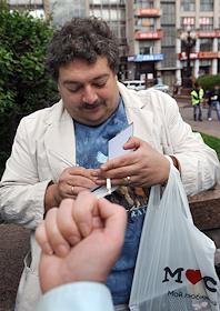 Писатель Дмитрий Быков во время акции "Контрольная прогулка" на Чистопрудном бульваре.