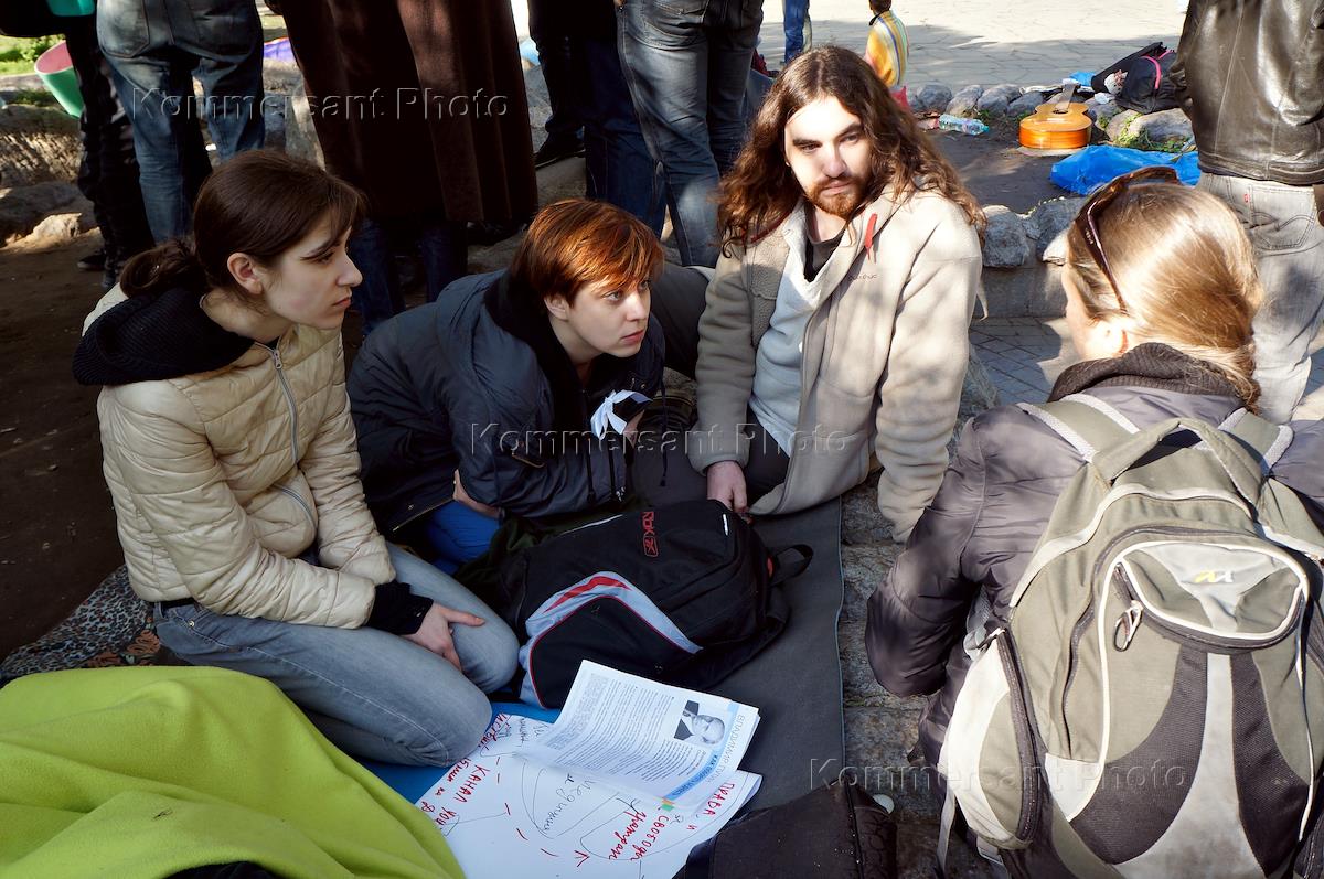 Участники акции оппозиции "Белая лента" на Чистопрудном бульваре.