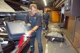 Аэропорт "Шереметьево - 2". Разгрузка багажа в транспортном цехе.