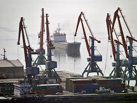 Виды Баку. Морской грузовой порт на Каспийском море.