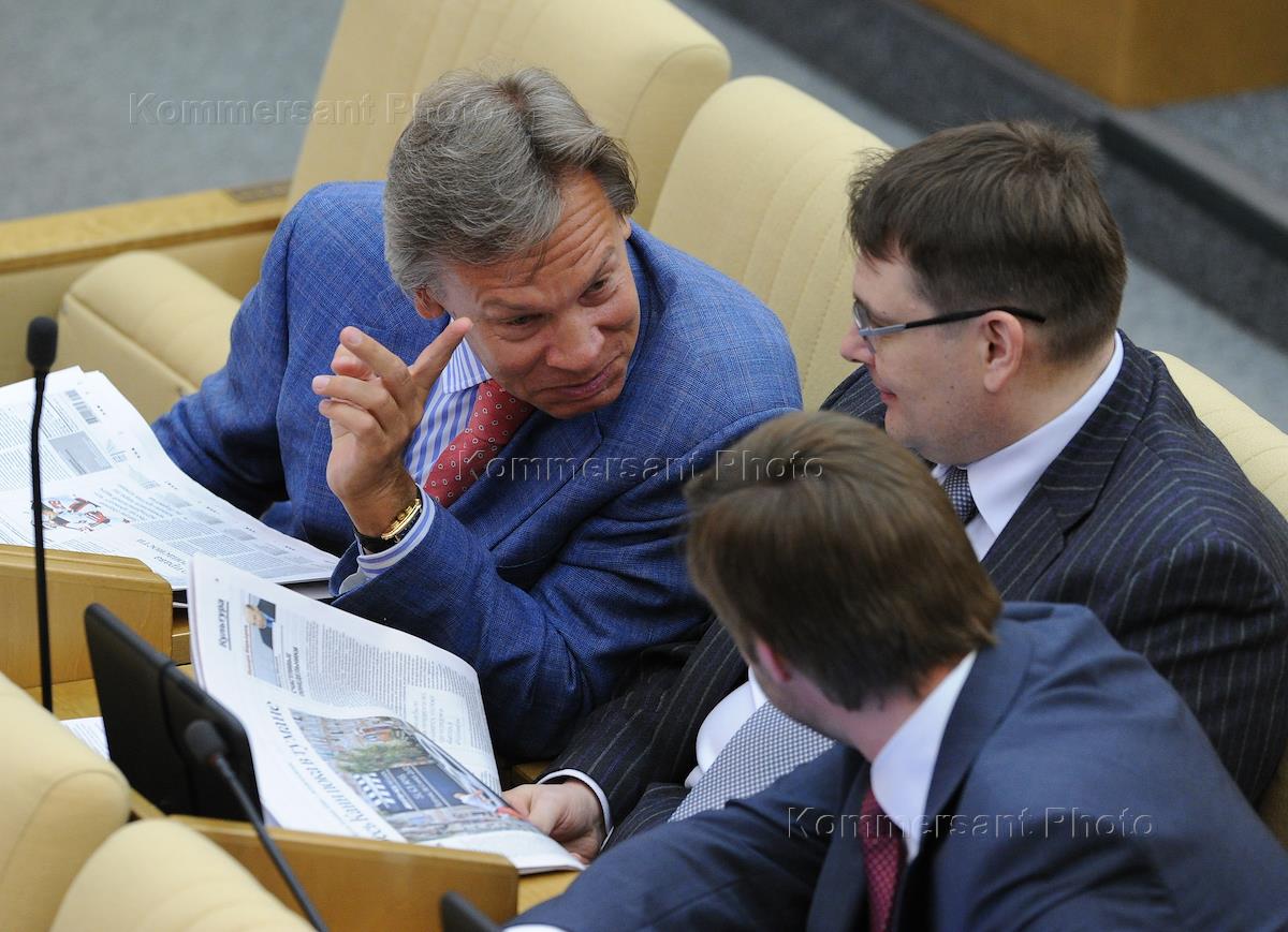 Слева направо: Председатель комитета Государственной думы (ГД) России по международным делам Алексей…