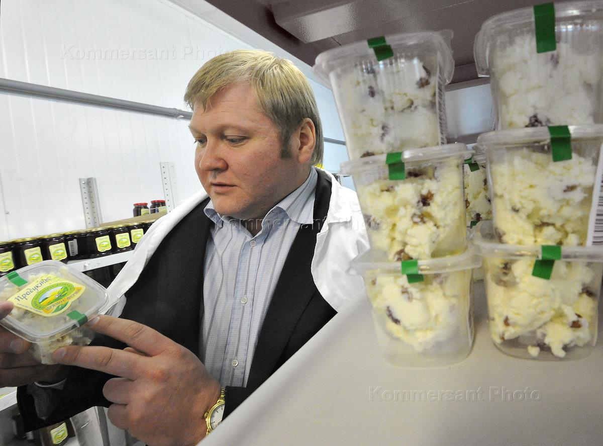 Главный акционер компании "Прямо с фермы" Андрей Машук с продукцией компании.